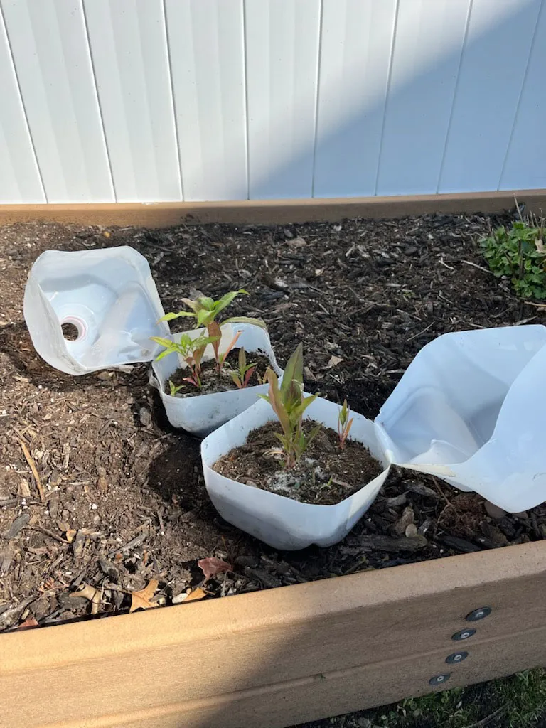 In general, placing the containers in an area that receives morning sunlight is important, but each seed has specific needs. Once the seedlings grow 3-5 inches tall and have at least 2 sets of leaves, they are ready to be transplanted into a pot or straight into your garden. My personal experience with this seedling process turned out positive. After getting multiple shoots per jug, I transplanted them directly into my container garden.